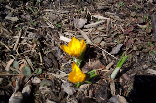 Here are some of the yellow crocus that are blooming in my front yard. (At least, I think they're crocus, I wasn't really paying attention to what I planted where.)