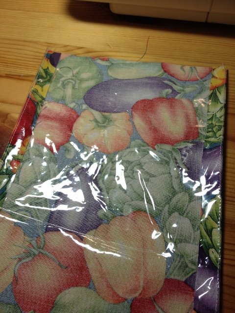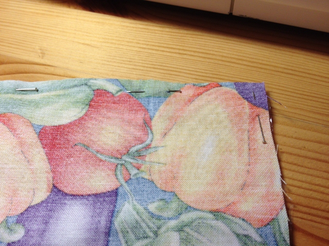 - Pin with the plastic lining down because otherwise it will get stuck on the sewing foot and pucker the fabric.