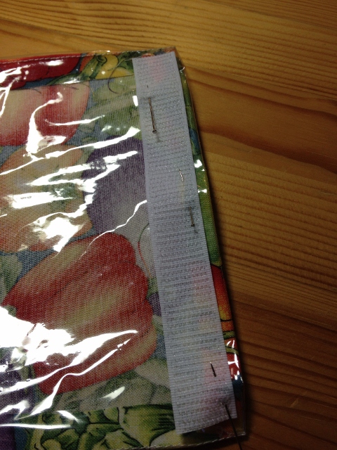 - Pin the velcro to the short ends, 0.25 inches from the end and sides.